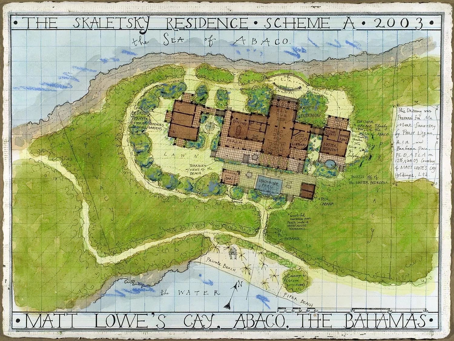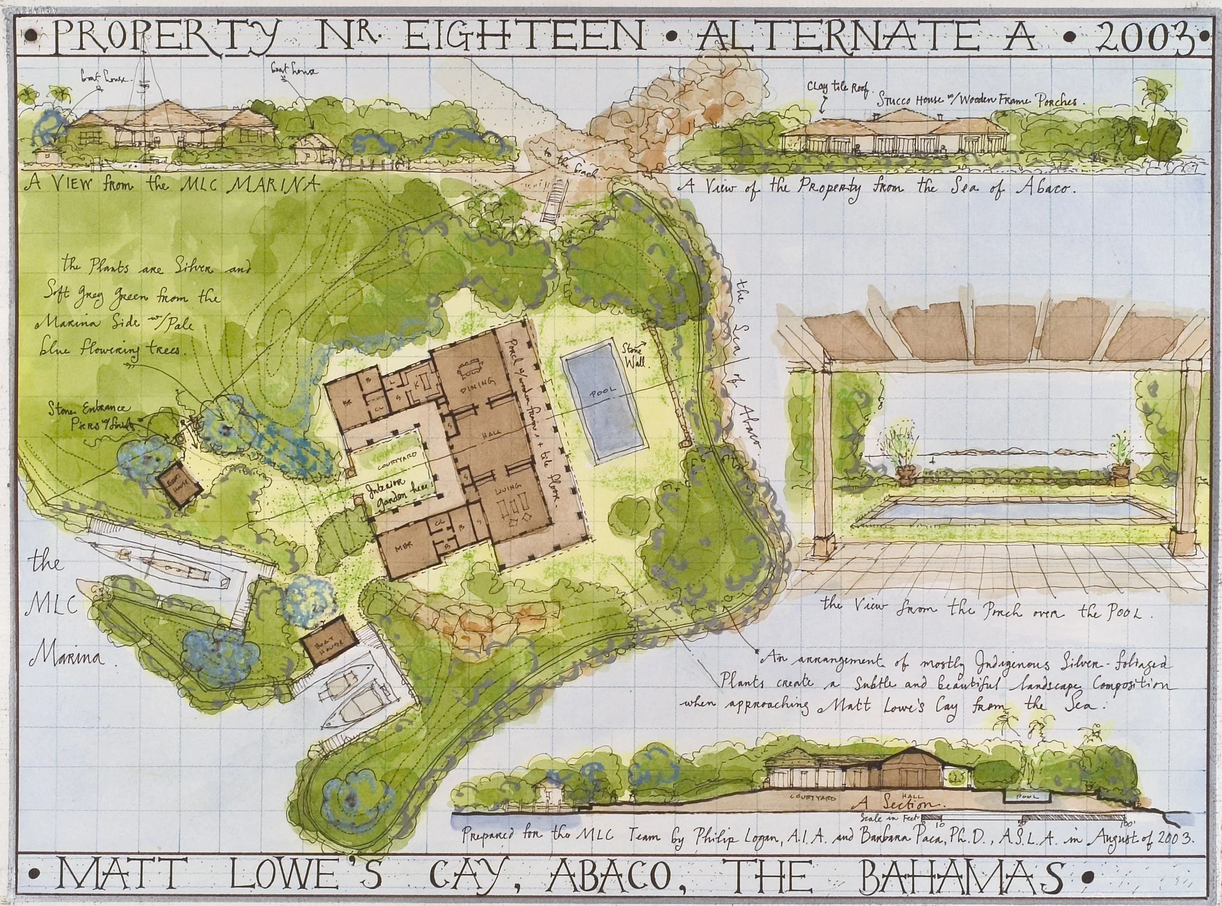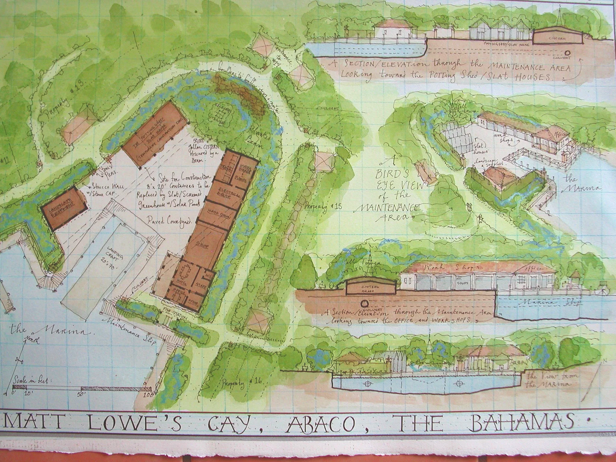 A private island masterplan with 16 luxury residences, marina, caretaker’s quarters, pool with pool house, bird sanctuary, and beaches along three coastlines. Supporting infrastructure includes lighthouse, ferry landing, golf cart paths, electrical and water systems, and irrigation. Native and non-invasive plantings were planned for a lush, private, colorful, and ecologically thoughtful landscape.